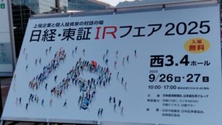 投資法 個人投資家必見!日経・東証IRフェア2025で企業情報とノベルティを満喫 こんにちは、セカンドライフ満喫中の、isseです。日経平均、ついに45,000円台に突入いたしましたね😊昨年の2月に「バブル期の高値(38,915.87円)を突破!」と騒いでいたのが、もう45,000円台ですよ! ここ1、2年の変動はまさに... 2025.09.28 投資法